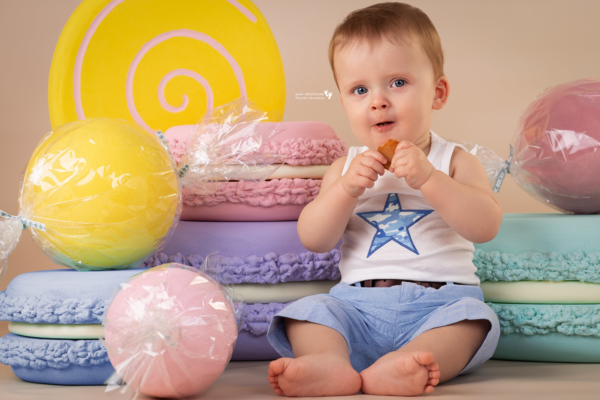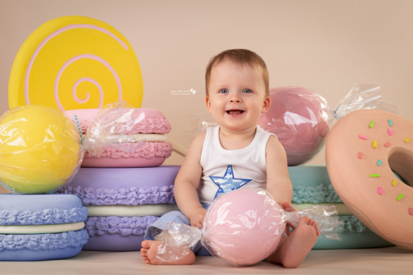 Suma sumarum okazało się, że i bez przekupstwa nasz mały solenizant swobodnie czuł się na planie zdjęciowym. Słodkości dostał zatem w nagrodę za piękne pozowanie : ]